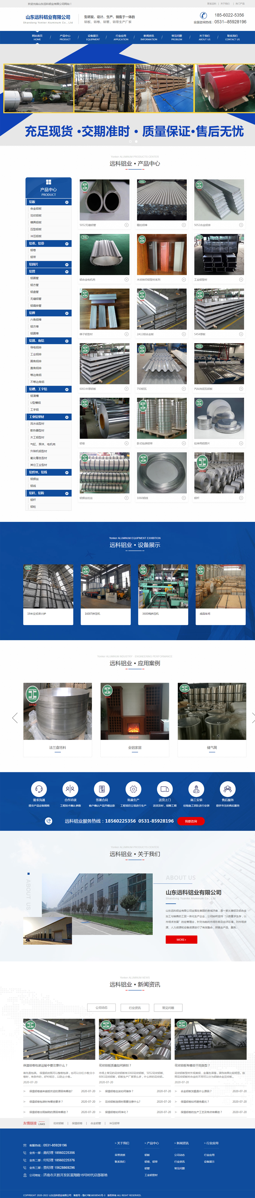 山東遠科鋁業(yè)有限公司是一家從事鋁及鋁合金加工與銷售的工貿一體化生產企業(yè),公司擁有多條冷軋、擠壓生產線,具備千噸級至萬噸級以上的梯次生產能力,裝備有600T、1100T、1600T、2000T、3600T、5500T、7500T、9000T、12500T、15000T等擠壓機臺、冷拉拔機、精拔機,并配有感應加熱爐、淬火時效爐以及拉伸、矯直、整形等設備。150MN鑄錠感應加熱爐最大時效有效區(qū)30m,可以滿足不同客戶的需求。公司產品涵蓋多個行業(yè)各種領域,共計100多個品種,12000余個規(guī)格;型材最大寬度可做到1100mm,管材最大外徑700mm,擠壓棒材最大外徑500mm,特殊型號可以加工定制。公司長年備有大量現(xiàn)貨庫存,以保證客戶的不時急需。
